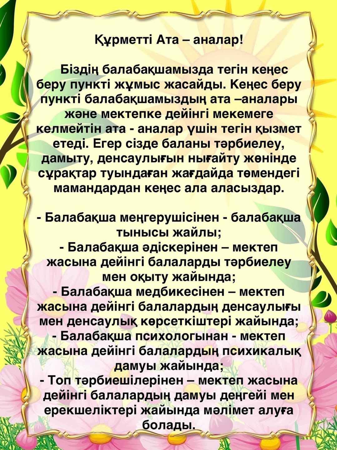 Құрметті ата-аналар!